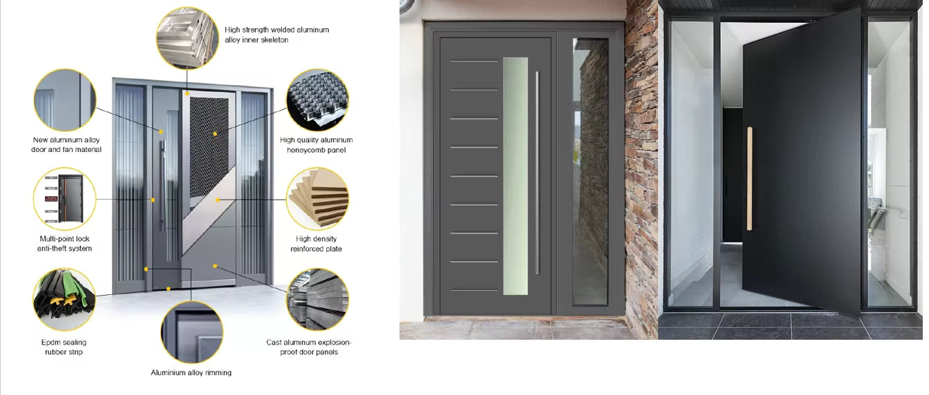 The primary material is aluminum alloy (typically 6000-series), which is extruded into precise profiles for frames, stiles, and rails. These profiles are treated with a powder-coated or anodized finish for color, durability, and weather resistance. A critical component is the thermal break, a polyamide or insulating resin strip that separates interior and exterior aluminum, reducing heat transfer.Tempered or insulated glass units (IGUs) fill the panels, often with Low-E coatings for energy performance. Hardware like stainless steel hinges,multi-point locking mechanisms, and rollers (for sliding systems) are integral.Seals and gaskets(EPDM or silicone) ensure weather-tightness, while reinforcements (galvanized steel) may be added within large profiles for extra strength.